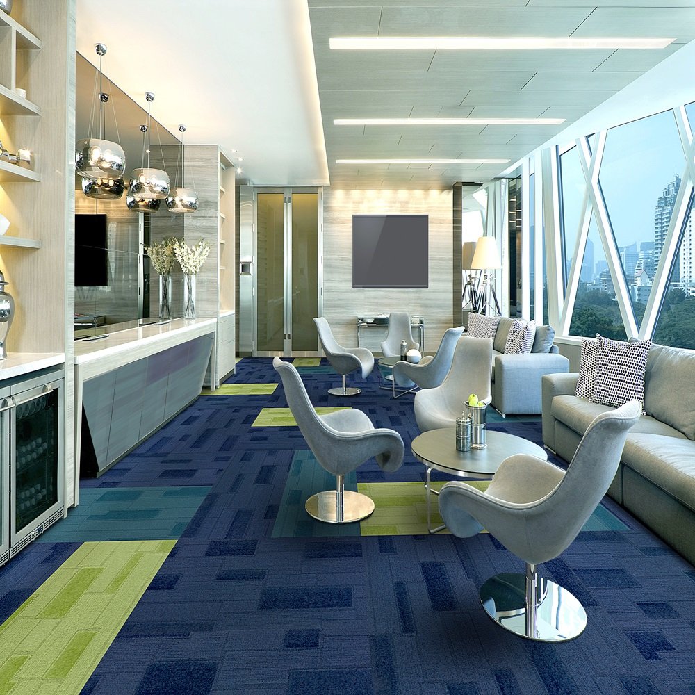Nylon carpet tiles on PVC backing in 3D geometric motif