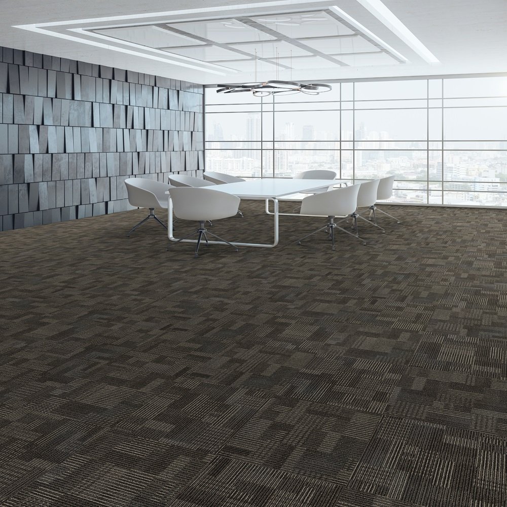 PP carpet tiles on PVC backing in geometric motif