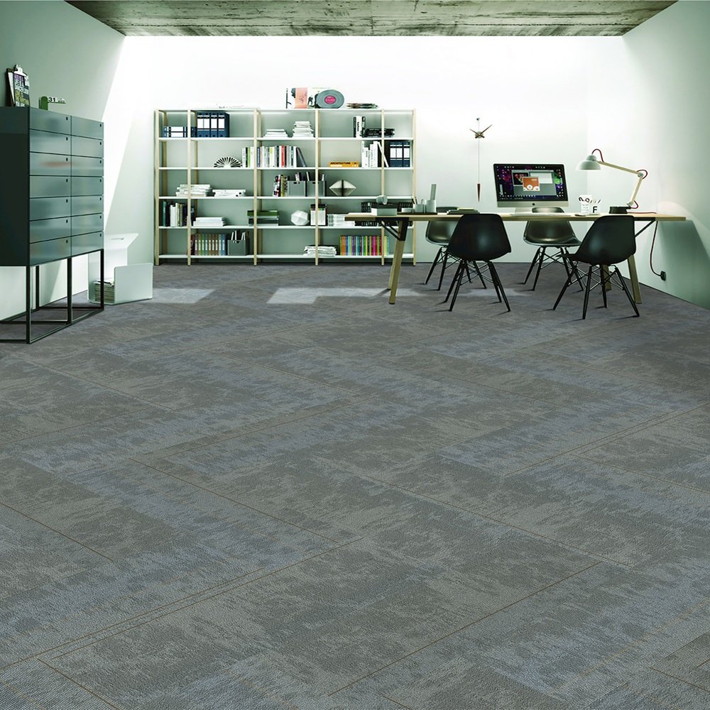 PP carpet tiles in plank format on PVC backing in abstract motif
