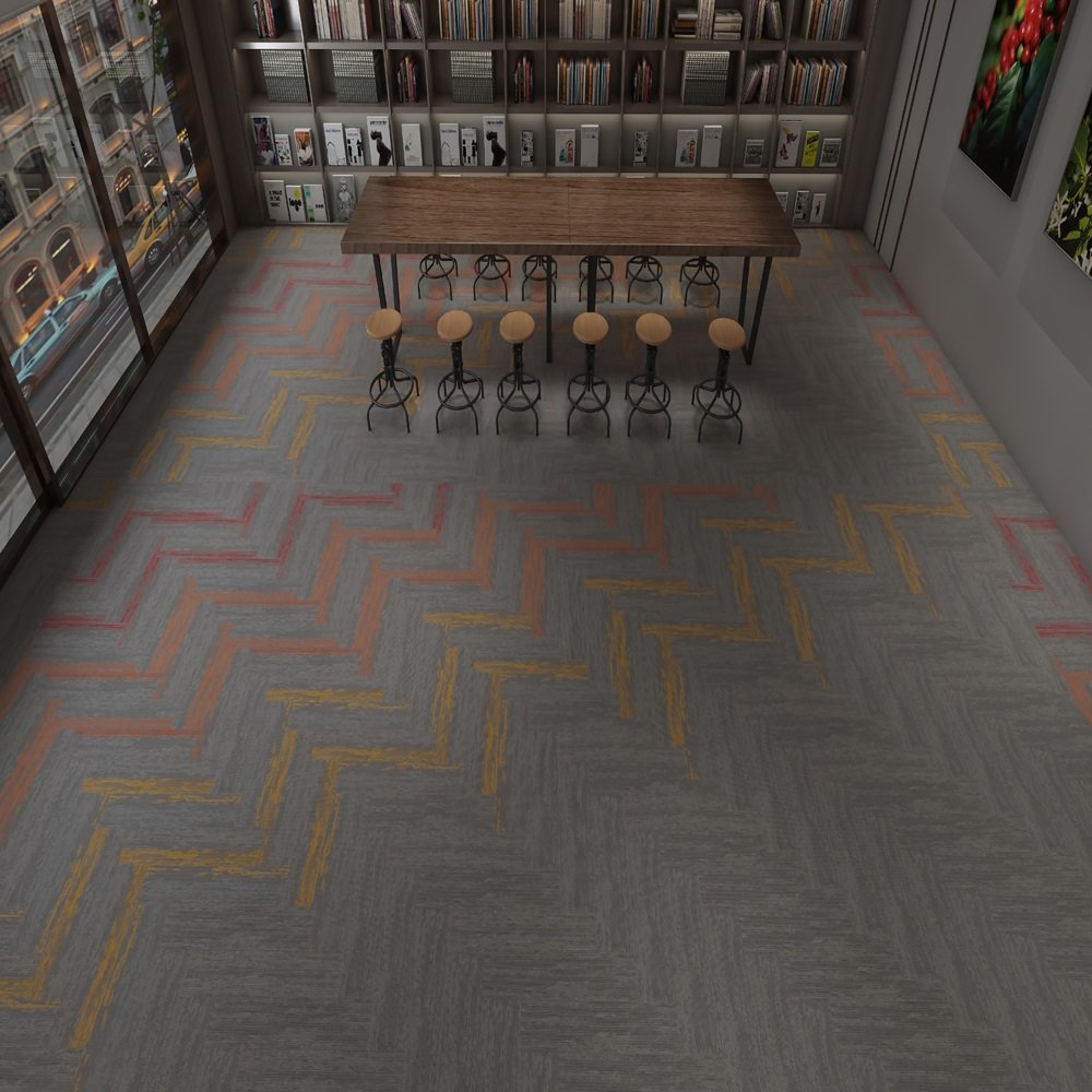 PP carpet tiles in plank format on PVC backing in abstract motif