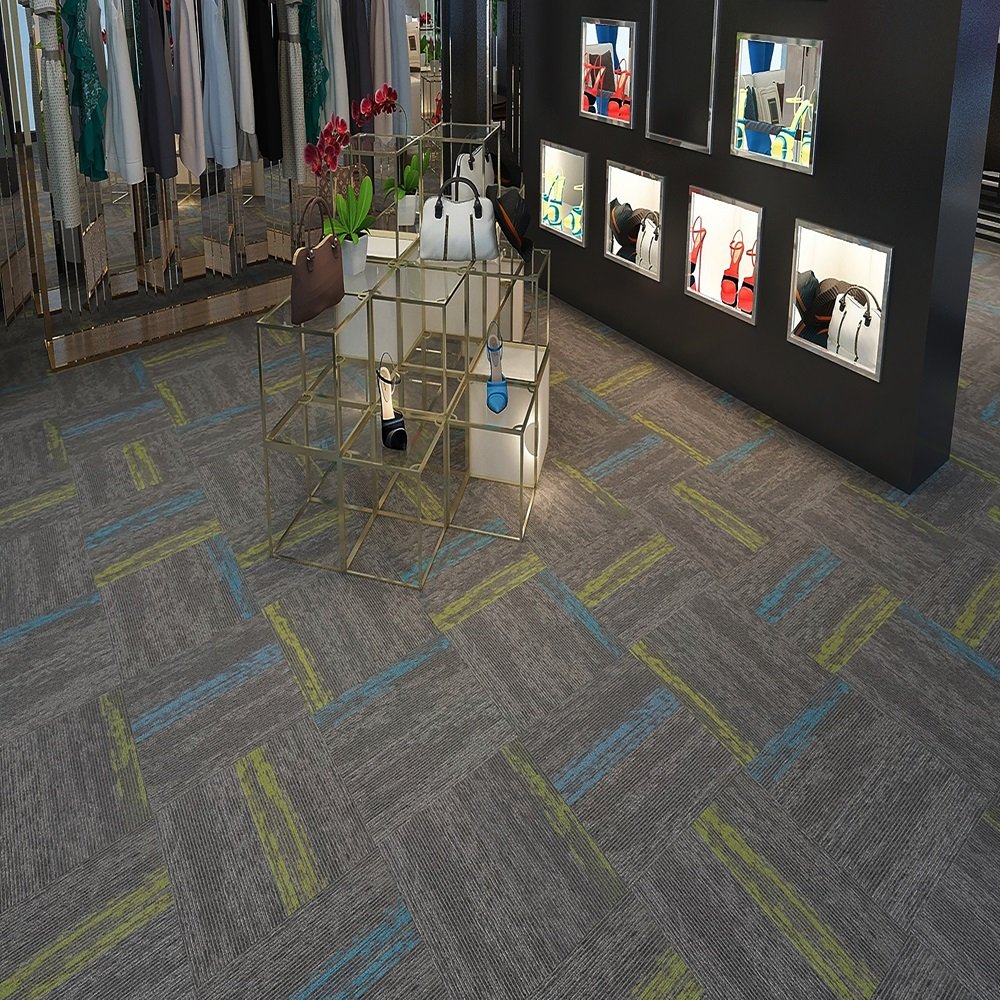 PP carpet tiles in plank format on PVC backing in abstract motif