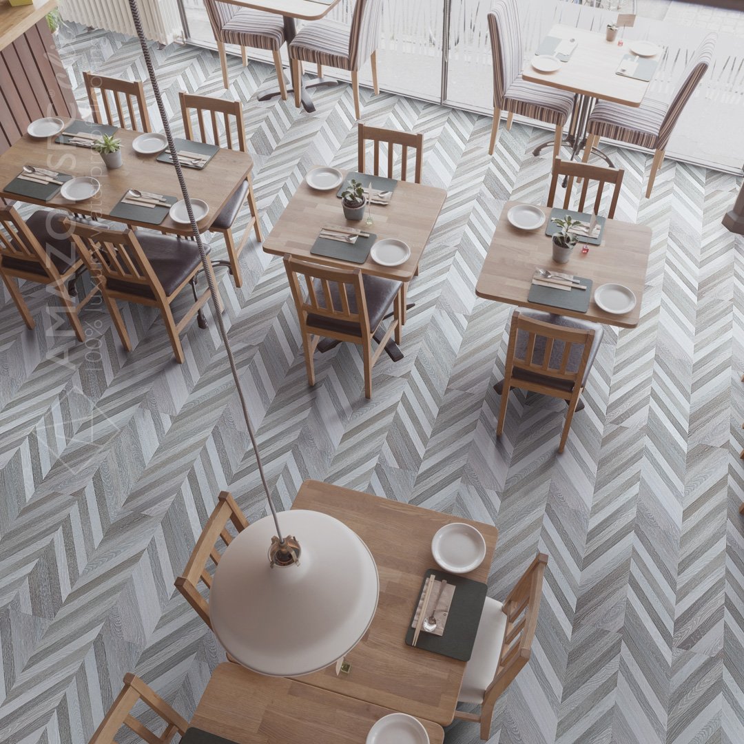 8. Herringbone vinyl installation – Design installation of vinyl flooring.