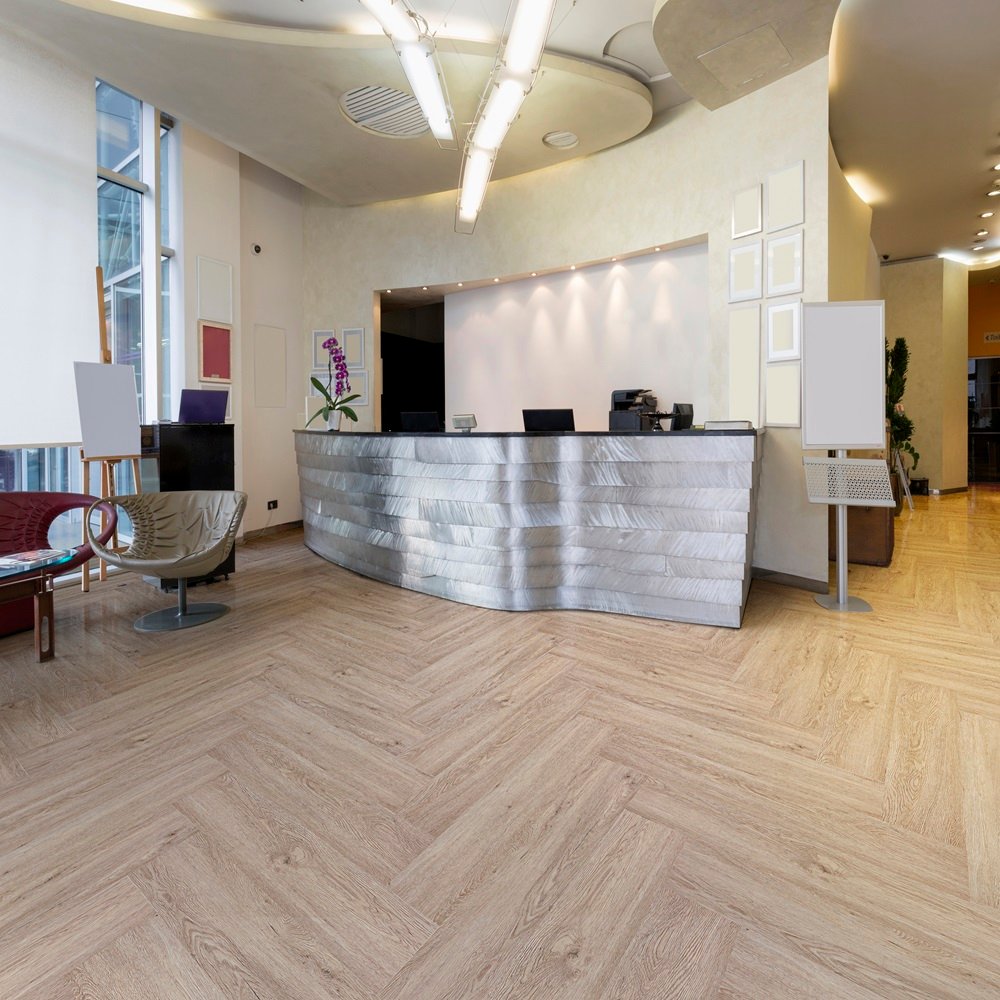 8. Herringbone vinyl installation – Design installation of vinyl flooring.