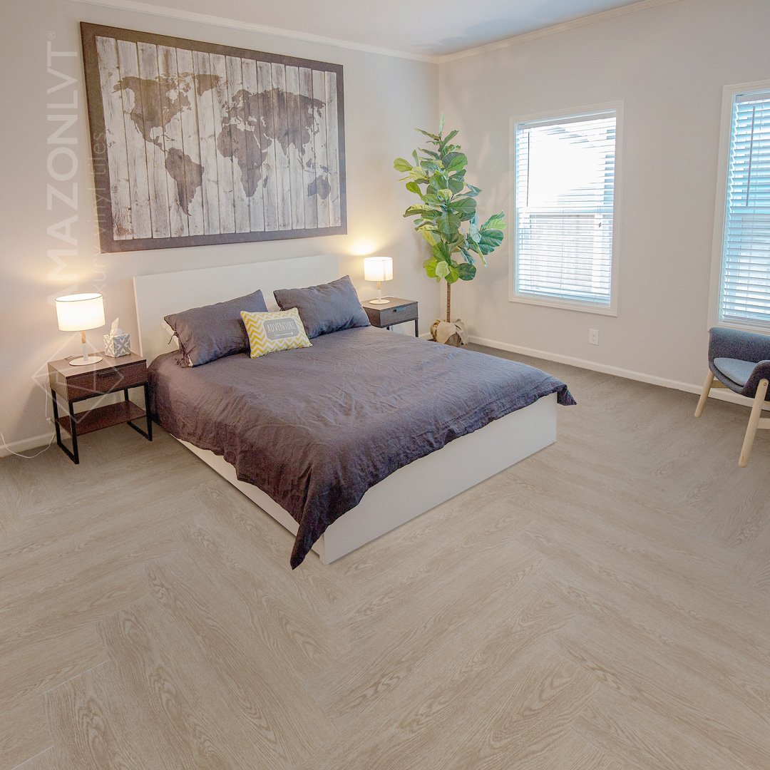 8. Herringbone vinyl installation – Design installation of vinyl flooring.